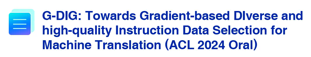在 8 月 14 日下午的 Paper Awards 环节,字节跳动旗下成果《G-DIG: Towards Gradient-based DIverse and high-quality Instruction Data Selection for Machine Translation》被主办方官宣入选 Outstanding Paper(1/35)。