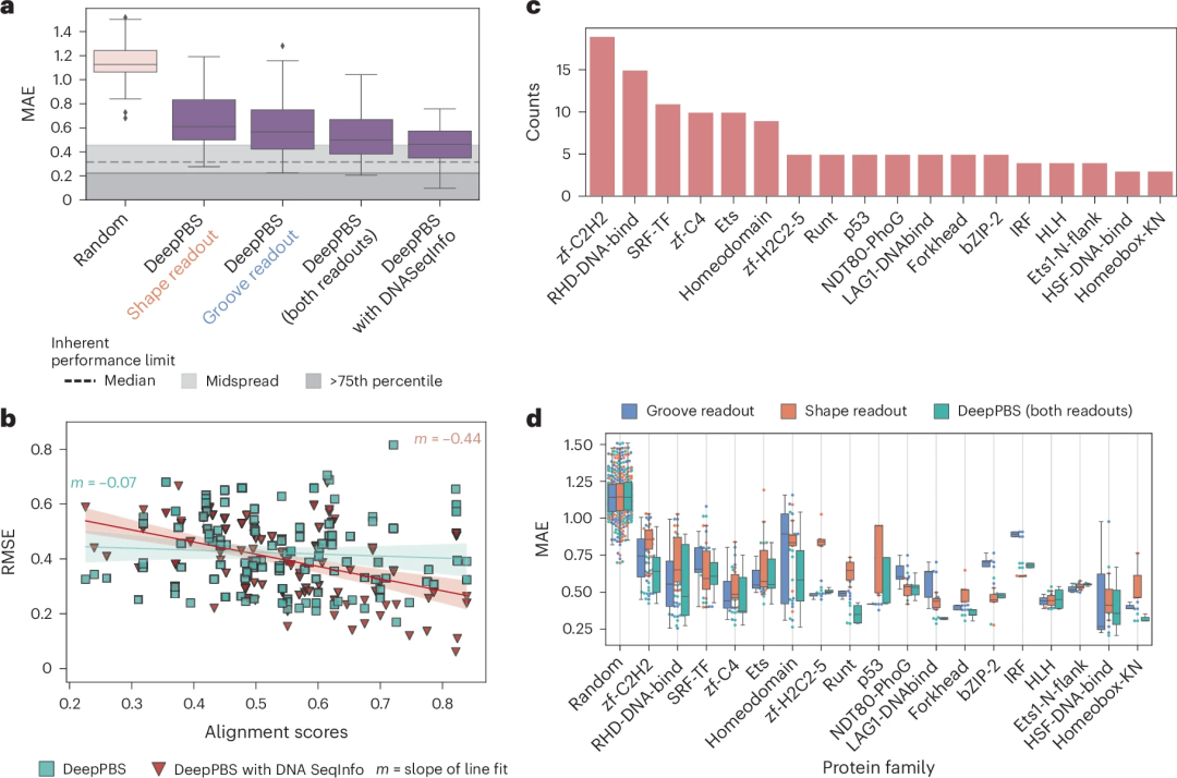 图示:DeepPBS 用于预测跨蛋白质家族的结合特异性的性能。(来源:论文)