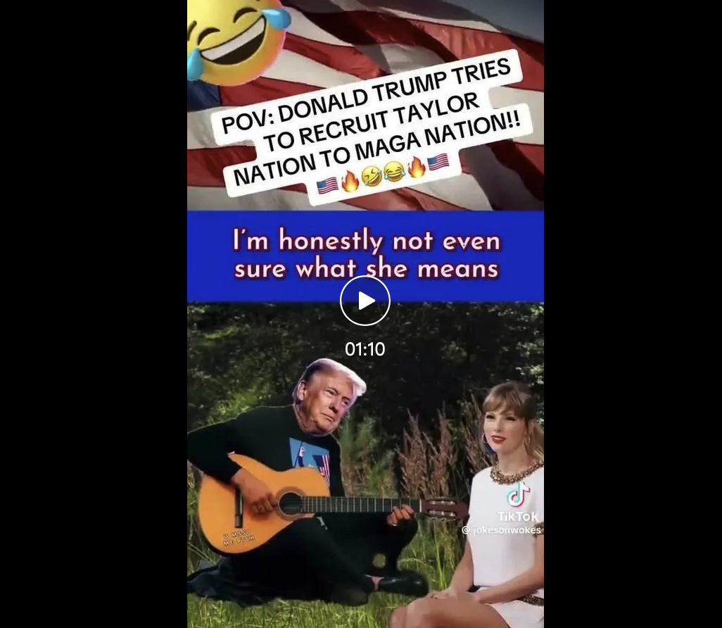 对此,「SwiftiesForTrump」还成了一个话题登上 X 平台,不少网友在线玩梗,各种模因视频被疯传: