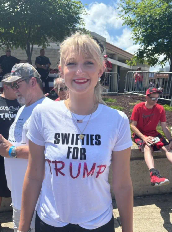 这名女子名叫珍娜・皮沃瓦基(Jenna Piwowarczyk),她曾在 6 月份威斯康星州拉辛的特朗普集会上,穿着一件自制的「斯威夫特支持特朗普」的 T 恤,甚至她在 Etsy 上售卖她的自制 T 恤。