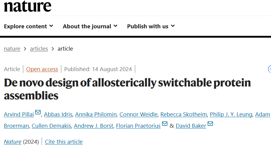 相关研究以「De novo design of allosterically switchable protein assemblies」为题,于 8 月 14 日发布在《Nature》上。