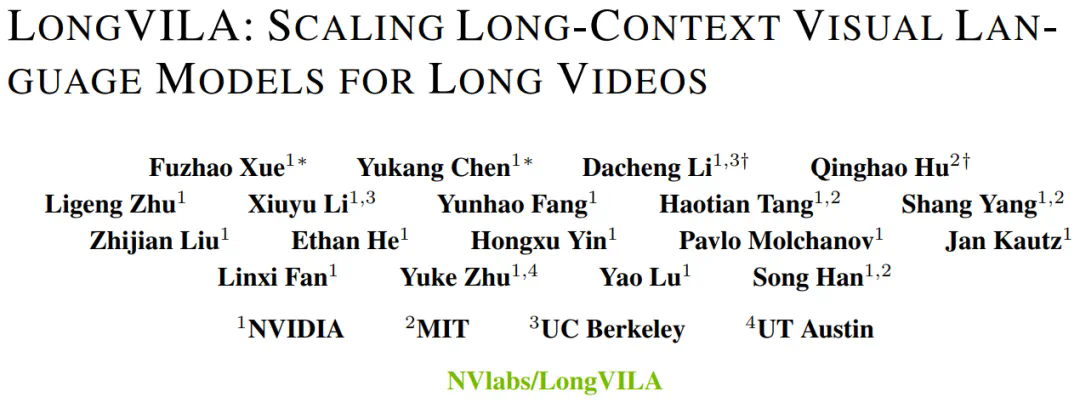 论文标题:LONGVILA: SCALING LONG-CONTEXT VISUAL LANGUAGE MODELS FOR LONG VIDEOS