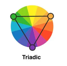 Triadic ,三元色配色方案。在标准的12 色色轮上选择三个相隔 120 度的颜色,如红、黄、蓝。