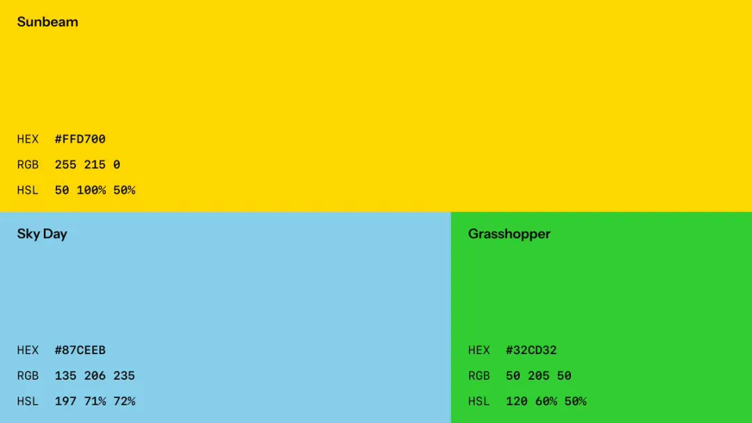 红色点燃激情和肾上腺素,唤起兴奋和活力。绿色代表着自然、增长和可持续性。浅蓝色唤起平静和清晰,常见于薄雾缭绕的山脉和晴朗的天空。