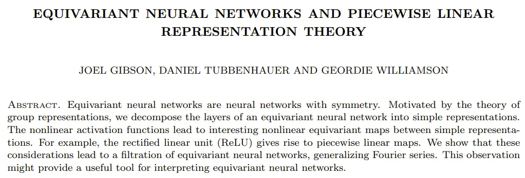 论文标题:Equivariant neural networks and piecewise linear representation theory