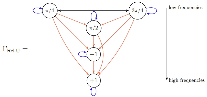 现在暂时假设函数是周期性的,周期为 2π。当用傅里叶级数展开神经网络时,我们很自然就会问发生了什么。在傅里叶理论中,卷积算子会在傅里叶基中变成对角。因此,为了理解信号流过上述神经网络的方式,还需要理解激活函数在基频上的工作方式。