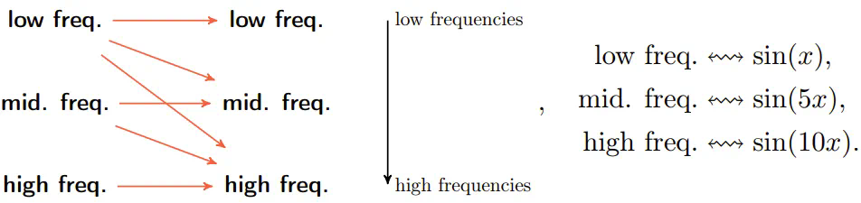 如果想学习一个低频函数,那么可以忽略神经网络中与高频相对应的大部分。