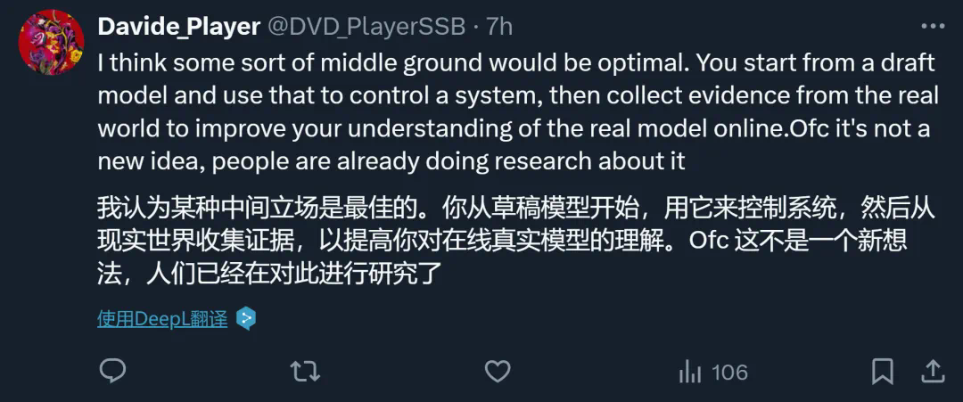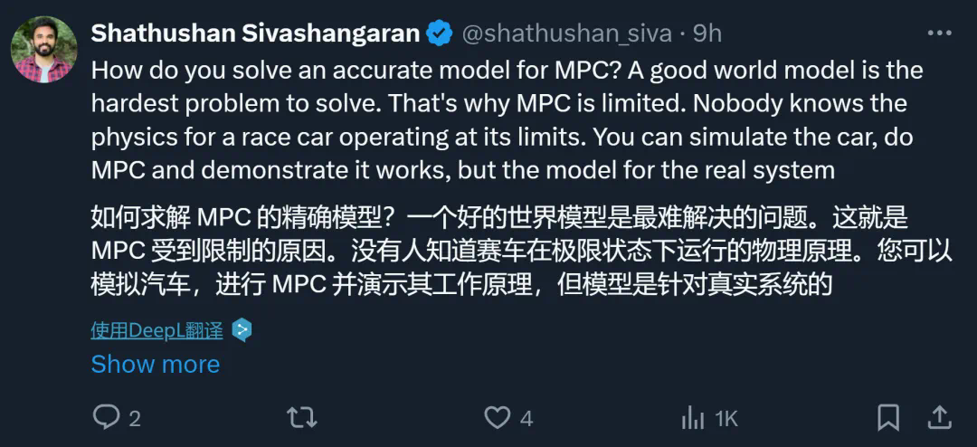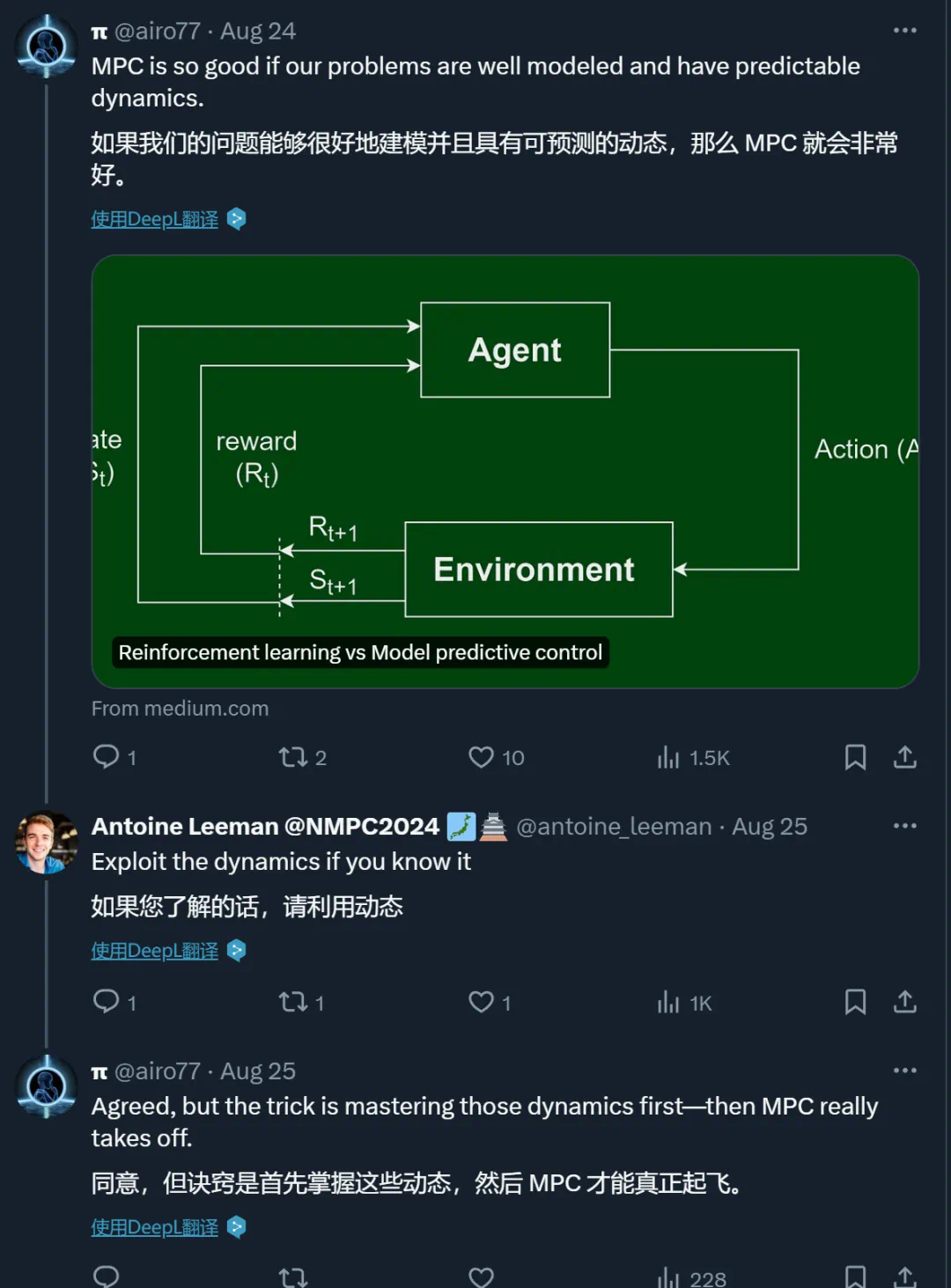 还有人说,强化学习和 MPC 未必是二选一的关系,二者可能有各自的适用场景。