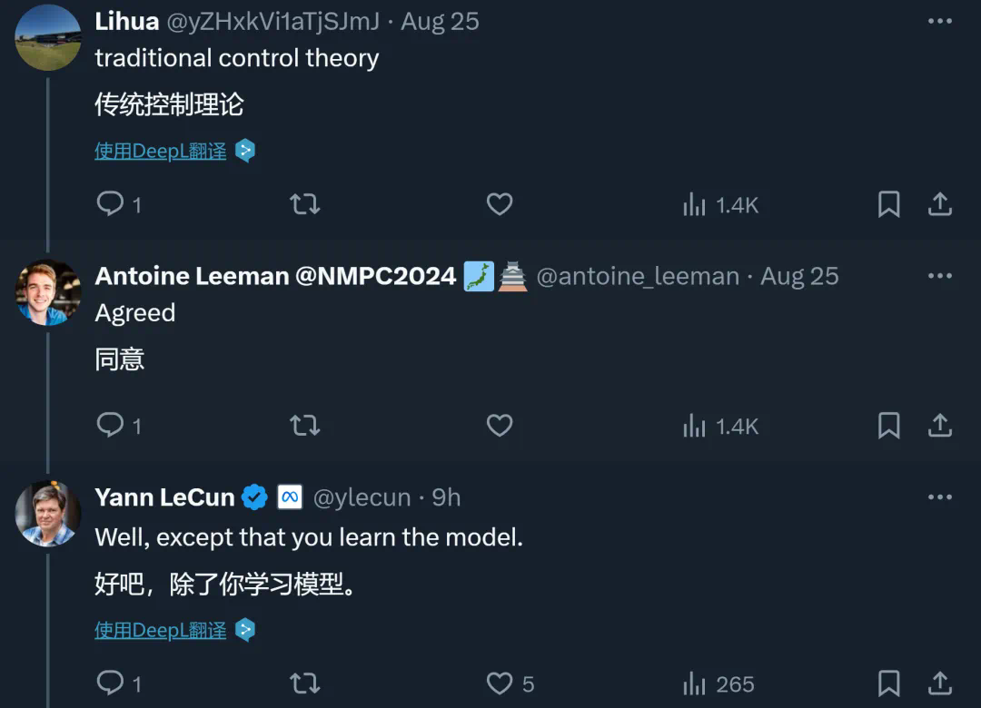 不过,也有人指出,求解精确的 MPC 模型是个很难的问题,LeCun 观点中的前提 ——「如果你有一个良好的世界模型」本身就难以实现。