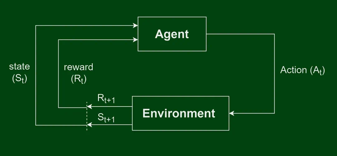 环境:智能体与之交互的环境或实体。智能体观察并采取行动,影响环境。