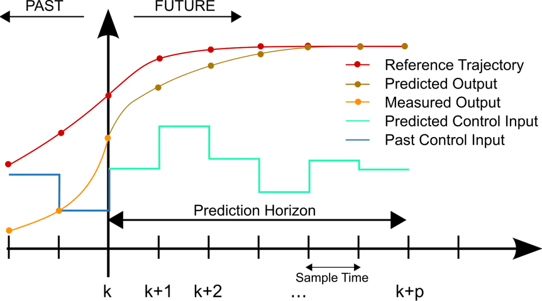MPC 的核心宗旨是使用系统的数学模型来预测未来的行为,然后利用该知识来产生控制操作,以最大化某些性能目标。