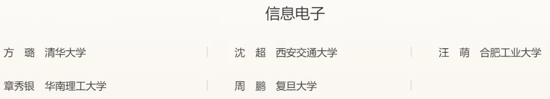 在「信息电子」领域的名单中,今年共有五位学者获奖: