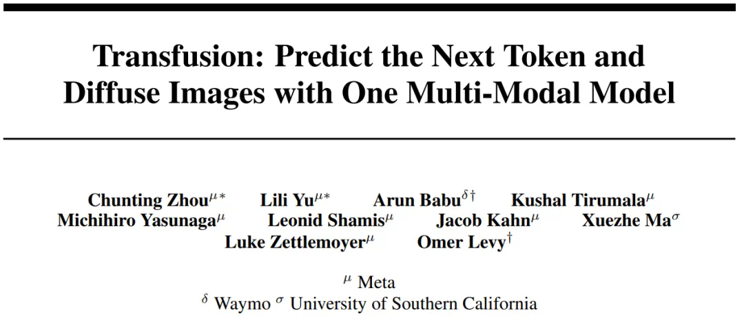 论文标题:Transfusion: Predict the Next Token and Diffuse Images with One Multi-Modal Model