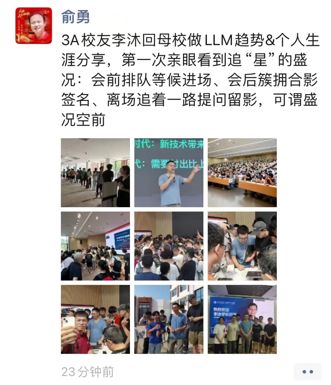 文章来源于互联网:李沐重返母校上海交大,从LLM聊到个人生涯,这里是演讲全文