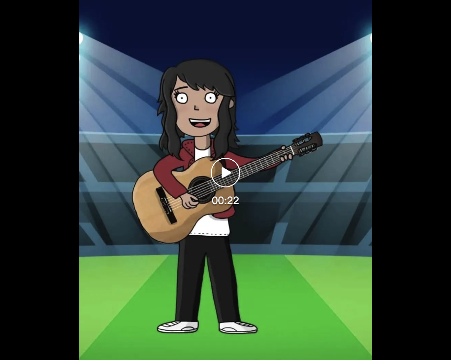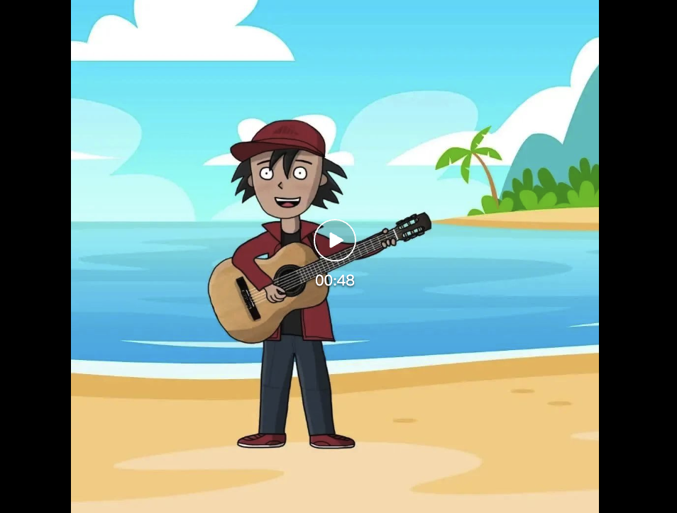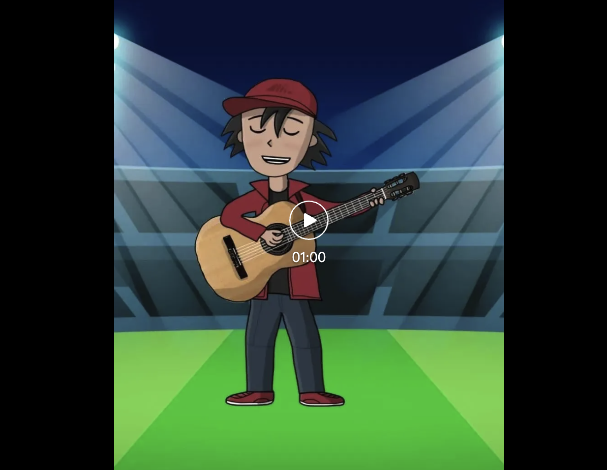 让动画小人抱着吉他,在舞台上自弹自唱。