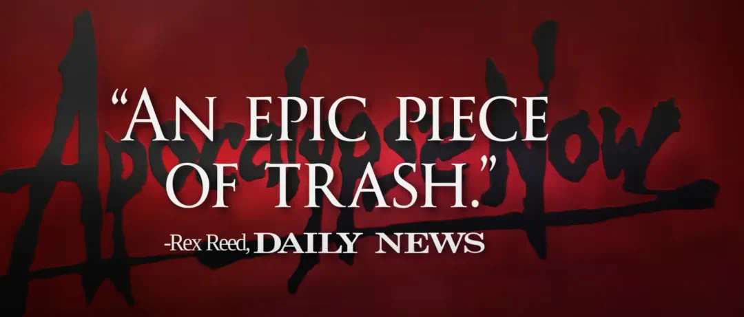 美国影评人 Rex Reed 确实相当讨厌《现代启示录》,但预告片中「一堆垃圾」的引述,也不是出自他之口。