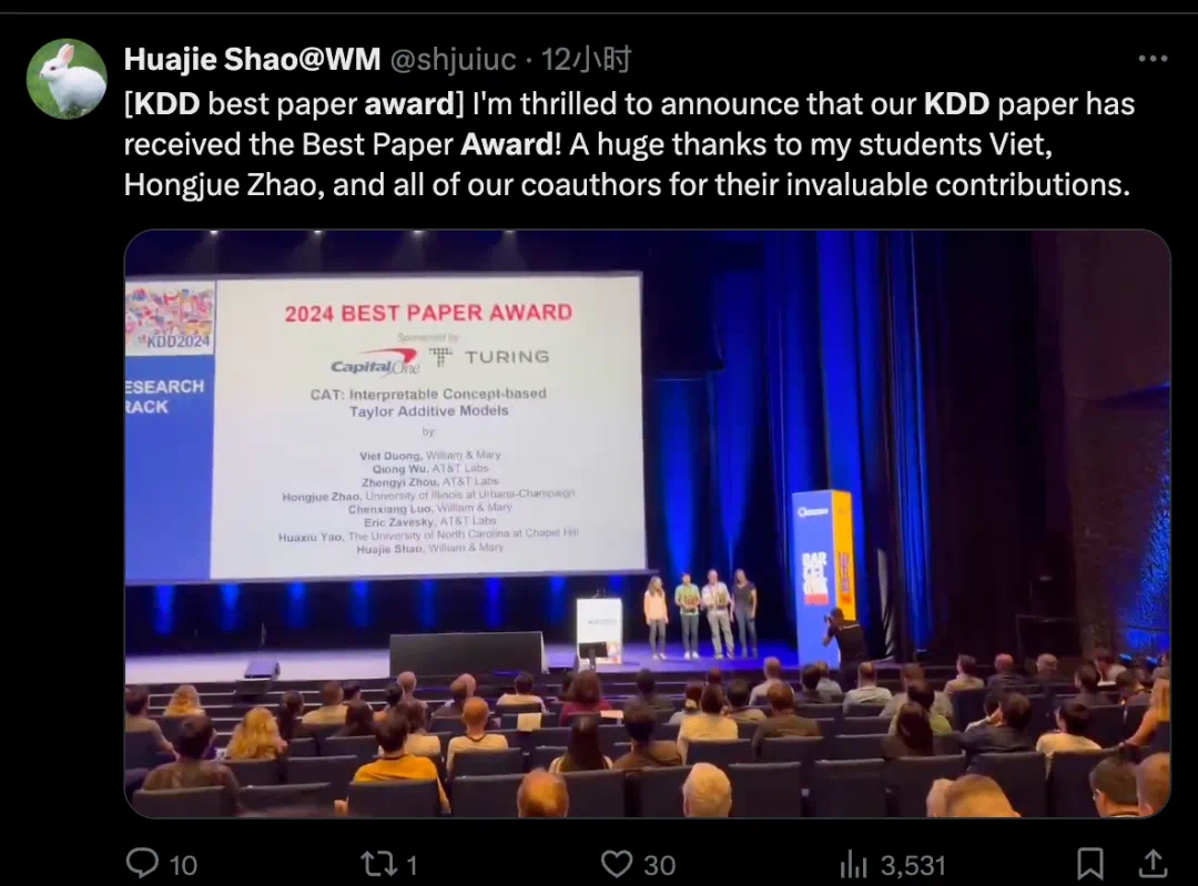 文章来源于互联网:孟瑜获杰出博士论文奖,中科大获最佳学生论文,KDD 2024全部奖项放出