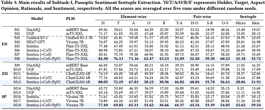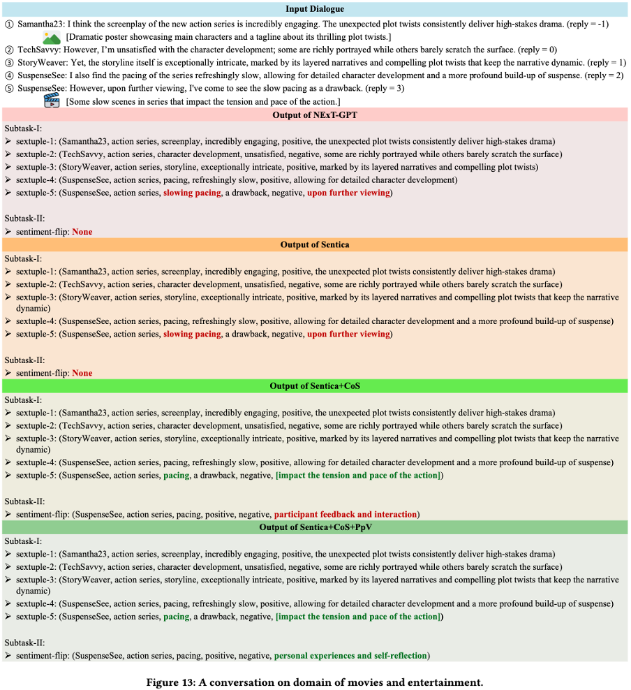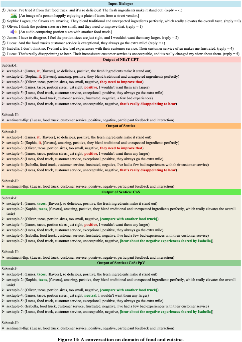 全景式情感六元组抽取:从多轮、多方、多模态对话中识别情感持有者、目标、方面、观点、情感及其原因。 -