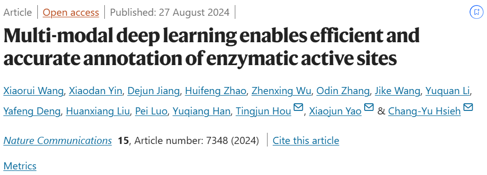 该研究以「Multi-modal deep learning enables efficient and accurate annotation of enzymatic active sites」为题,于 2024 年 8 月 27 日发布在《Nature Communications》。