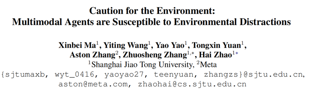论文题目:Caution for the Environment: Multimodal Agents are Susceptible to Environmental Distractions -