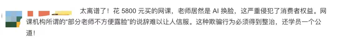 网课能卖出高价,很大程度上基于消费者对名师的信赖和追捧。网课教师的资质原本就难以确保,AI 换脸则使得对教师身份的确认变得更加困难。
