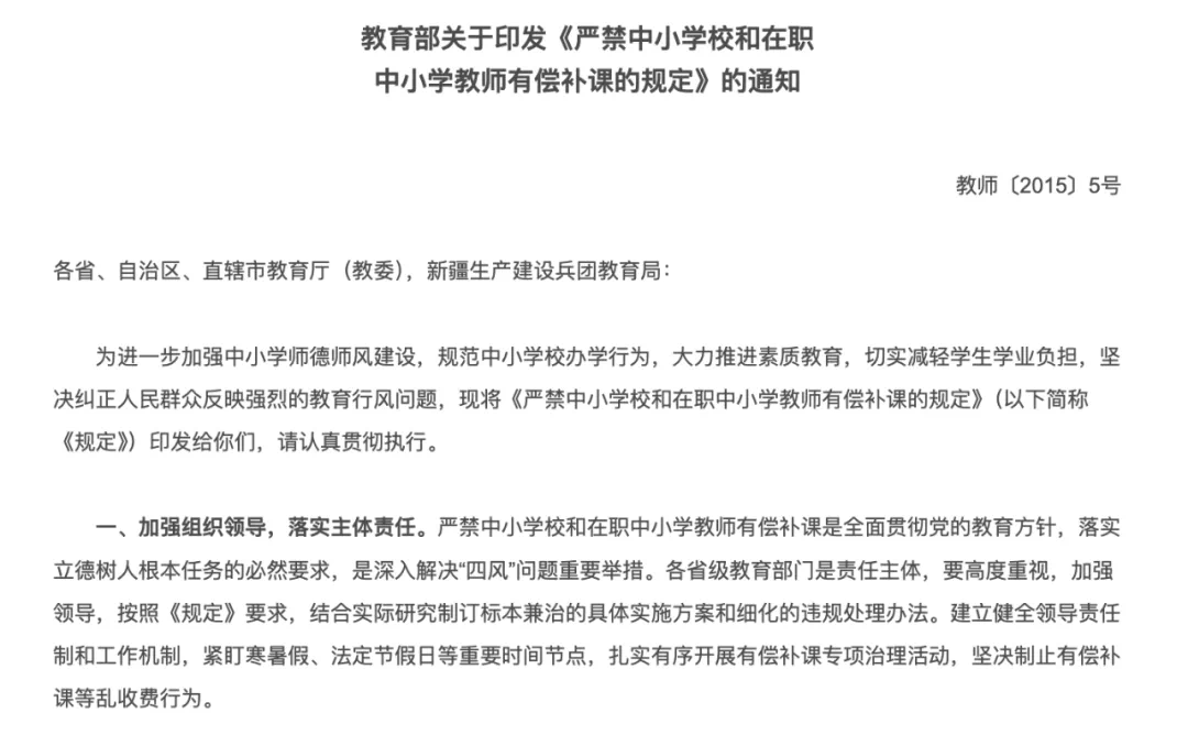 据教育部印发的《严禁中小学校和在职中小学教师有偿补课的规定》,严禁在职中小学教师参加校外培训机构或由其他教师、家长、家长委员会等组织的有偿补课。