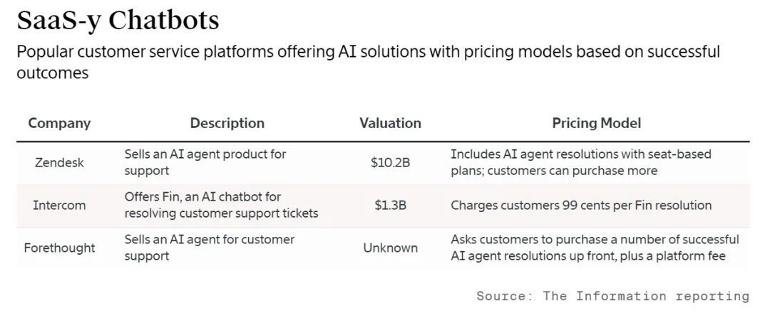 Zendesk 并非孤例,它的两家竞争对手 Intercom 和 Forethought 也开始要求客户仅在 AI 功能运行良好、客户可以将其设置为自动运行的情况下才付费。