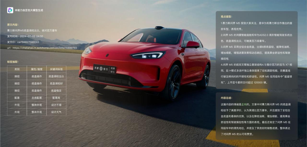 文章来源于互联网:赛力斯应用豆包大模型打造“用户之声”管理平台