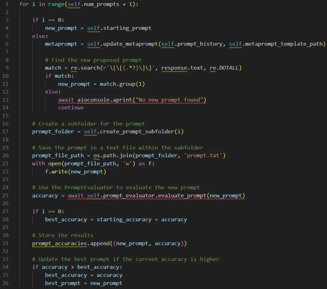 到这里,我们就已经实现了基线的评估机制,可以实现优化器了,这是完成 APE 工作流程的拼图中缺失的一块。下面一步一步来(就像 CoT):