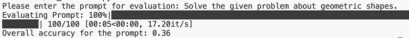 此代码的作用是加载训练数据并允许输入将用于生成响应的初始提示词。然后,使用 PromptEvaluator 类来评估这些模型响应,该类会计算模型执行该提示词的准确度。以下是 PromptEvaluator 的详细工作过程: