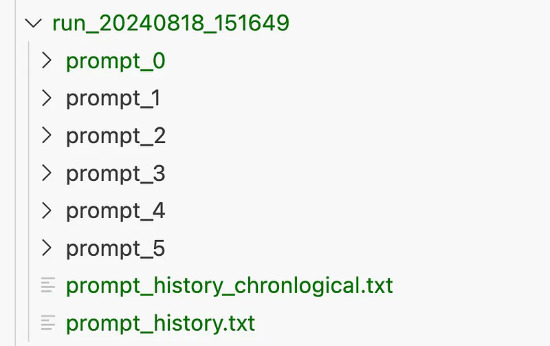 为便于分析 APE 运行的结果,这里会为每次运行创建一个专用文件夹,并按时间戳进行组织。在此文件夹中,每个生成的提示词都有一个子文件夹,名为 prompt_1、prompt_2 等。让我们查看其中一个提示词文件夹:
