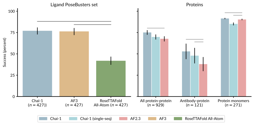 Chai Discovery 研究人员在大量基准测试中测试了 Chai-1。