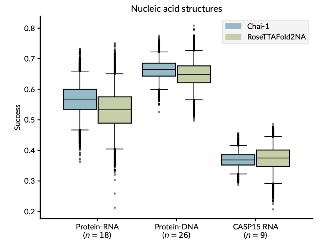 图示:Chai-1 在核酸复合物预测上的表现。(来源:Chai Discovery)