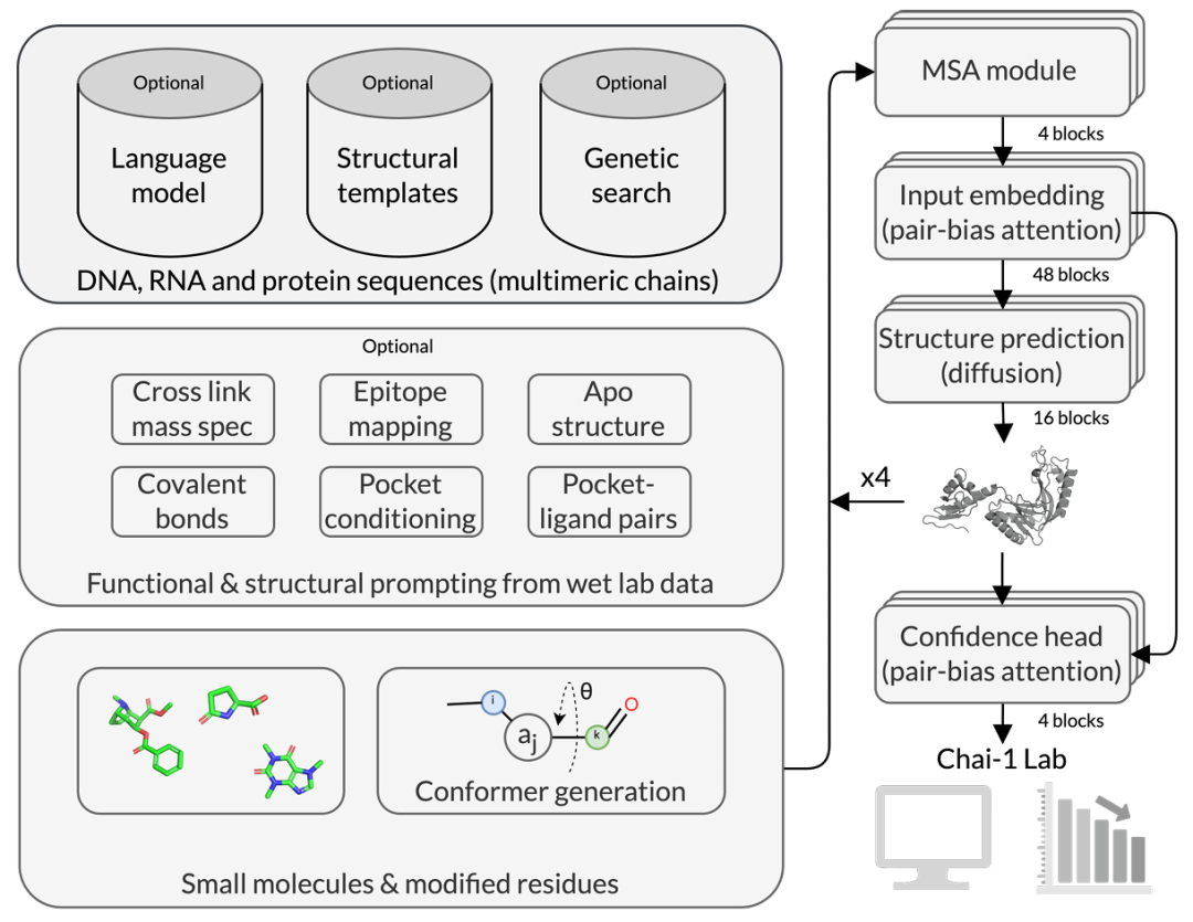 图示:Chai-1 模型架构和输入特性概述。(来源:Chai Discovery)