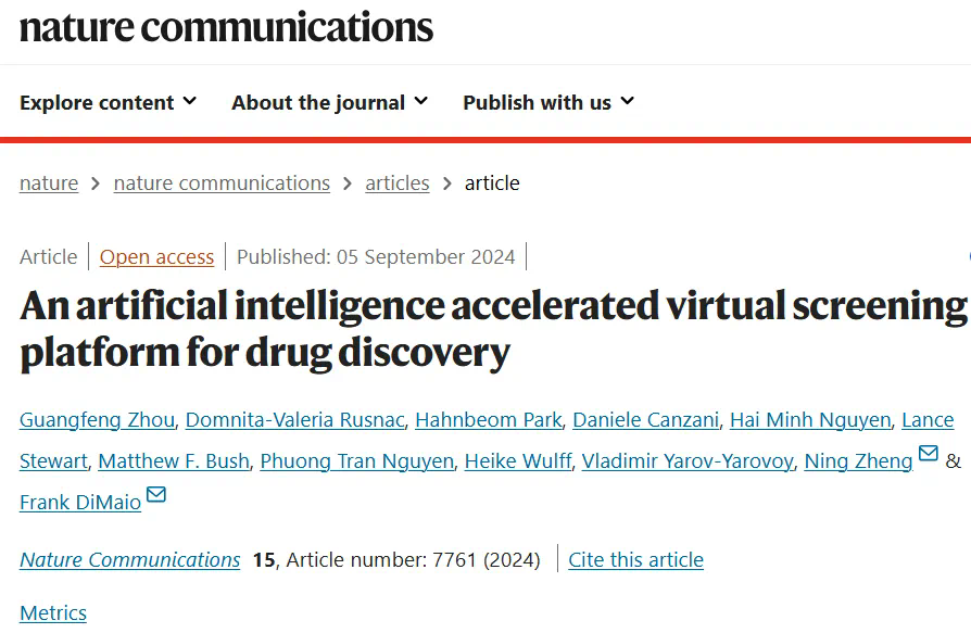 相关研究以「An artificial intelligence accelerated virtual screening platform for drug discovery」为题,于 9 月 5 日发布在《Nature Communications》上。