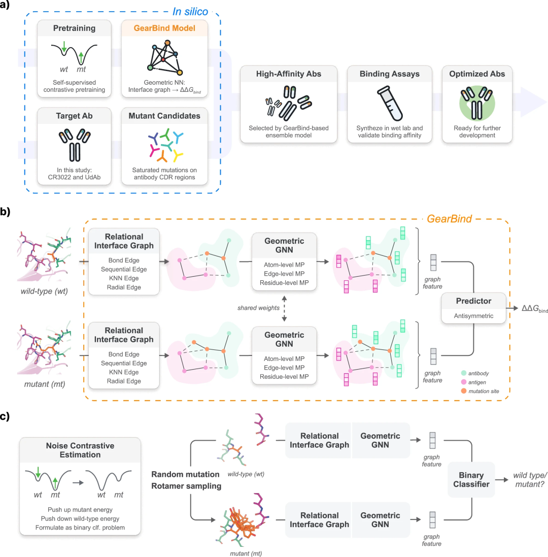复旦大学与百奥几何(BioGeometry)团队联合推出了一种可预训练的几何图神经网络 GearBind,展示了其在抗体亲和力成熟中的潜力。
