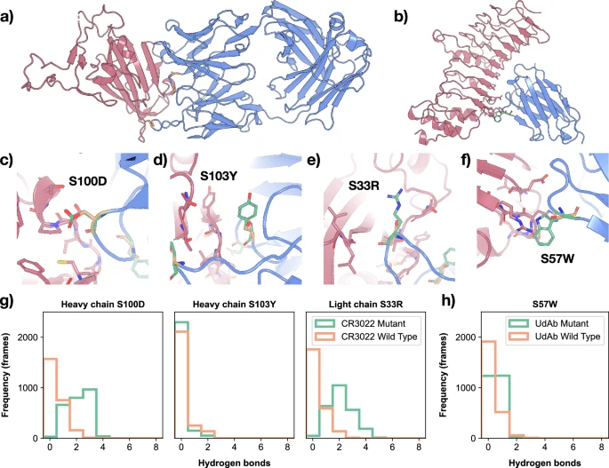 简而言之,GearBind 被证明是一种高效且强大的工具,可用于设计具有增强结合亲和力的抗体。根据 GearBind 流程识别出的最佳突变体的分子动力学模拟,研究人员观察到他们的设计通过创建新的相互作用或加强现有的接触(尤其是氢键)来增强结合亲和力。这让研究人员得以了解 GearBind 如何从数据中学习并设计出增加结合亲和力的突变体。