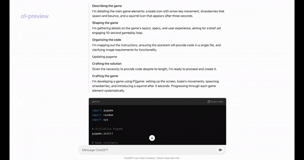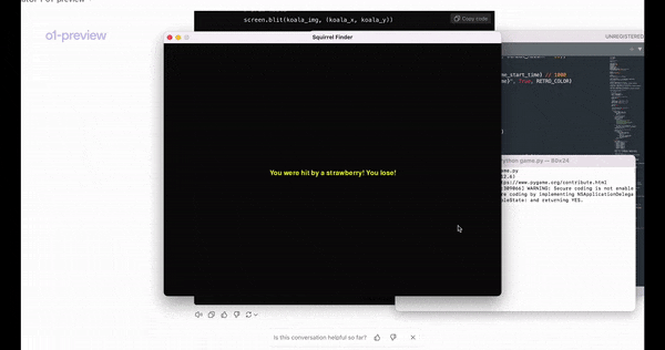 OpenAI 研究员 Jason Wei 让 o1 编写一个名为「Squirrel Finder」(找松鼠)的简易视频游戏的代码。