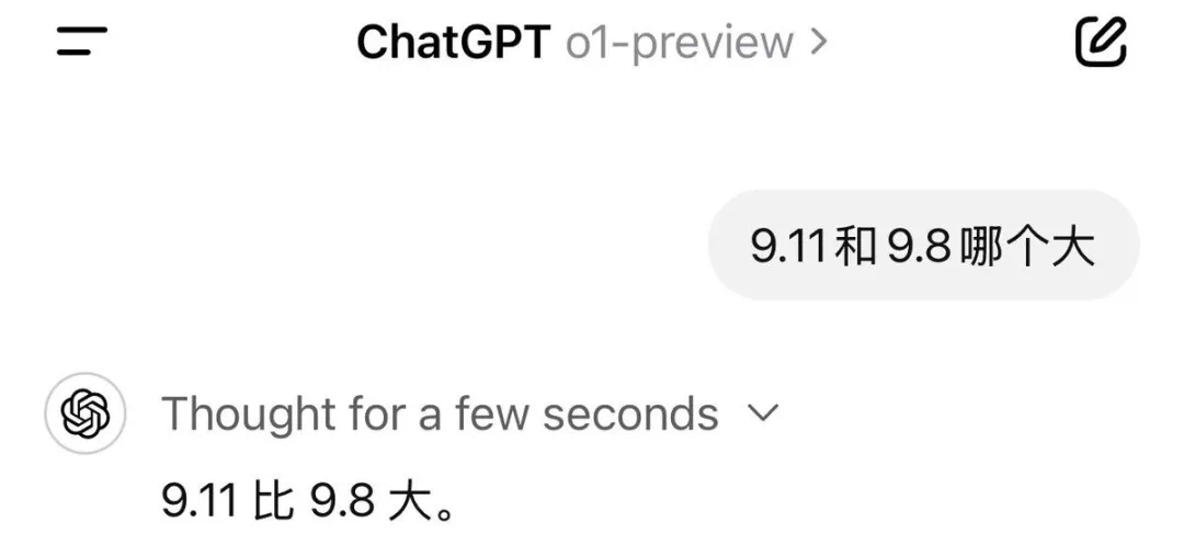 还有网友问了 o1 那道经典的数学题 ——「9.11 和 9.8 哪个大?」