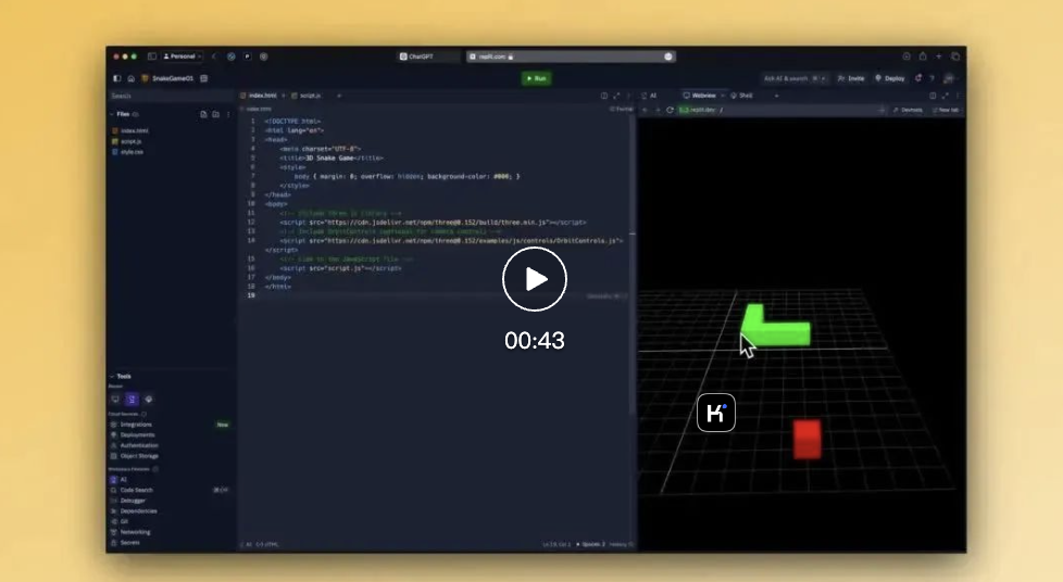 Ammaar Reshi 还用 o1 在不到一分钟的时间里,创建了一个 3D 版本的贪吃蛇游戏!
