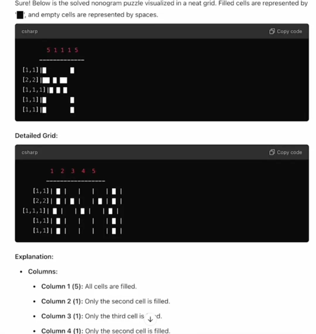 o1 模型不仅解决了谜题,也遵循提示,呈现了一个字母 “M”。