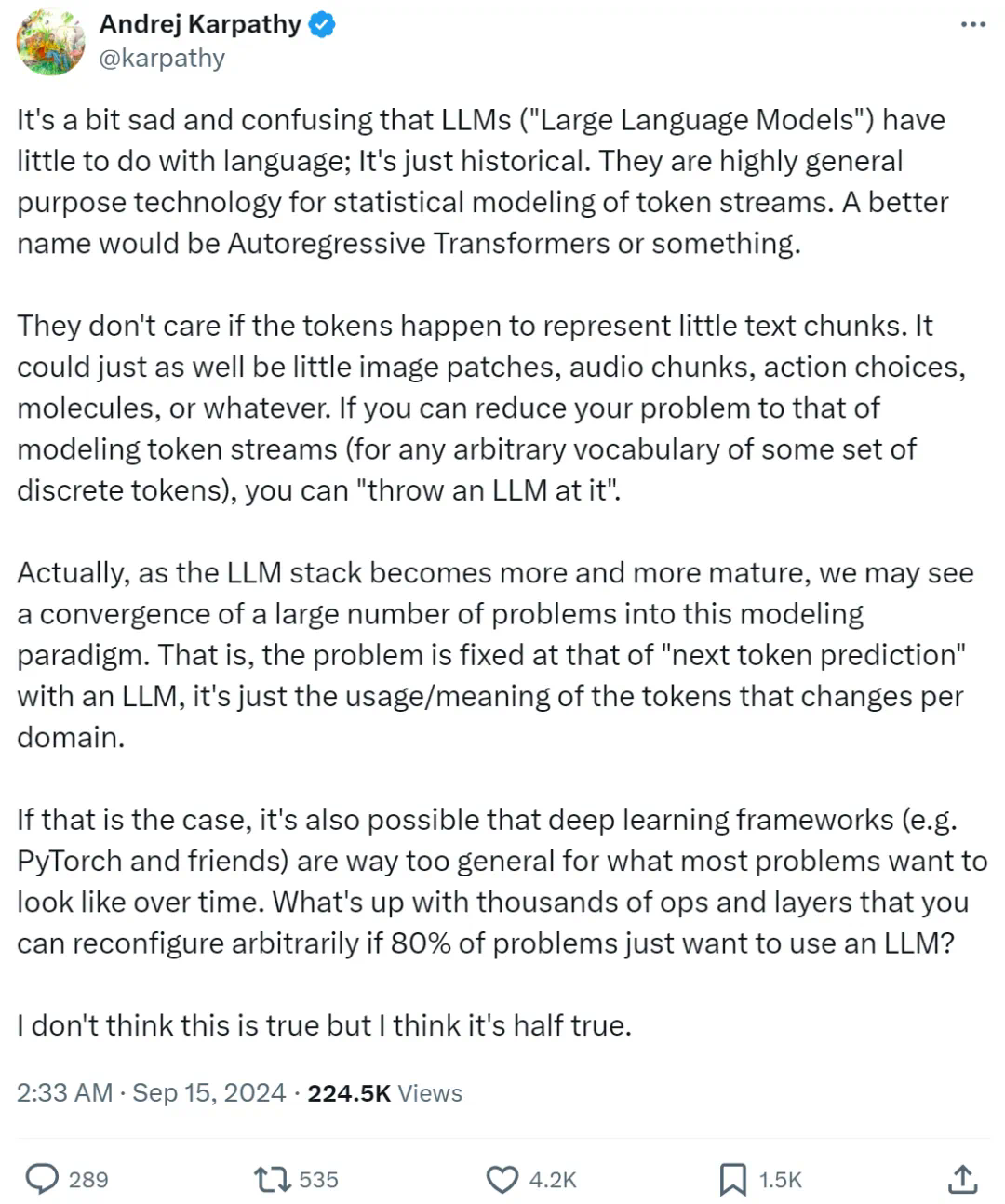 参考链接:https://x.com/karpathy/status/1835024197506187617