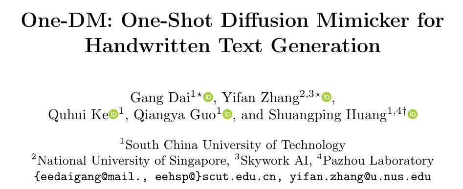 来自华南理工大学、新加坡国立大学、昆仑万维以及琶洲实验室的研究者们提出一种新的风格化手写文字生成方法,仅需提供单张参考样本即可临摹用户的书写风格,支持英文,中文和日文三种文字的临摹。
