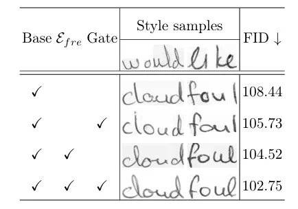 核心模块对算法性能的影响 如下表所示,本文提出的拉普拉斯风格增强模块和门控机制具有协同作用,有效提升了对用户笔迹的临摹性能。此外,实验也证明了拉普拉斯算子比其他算子提取的风格模式更加清晰,有助于提升文字合成性能。