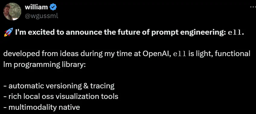 文章来源于互联网:OpenAI前研究者发布提示词工程框架ell,升级版LangChain,支持版本控制和多模态