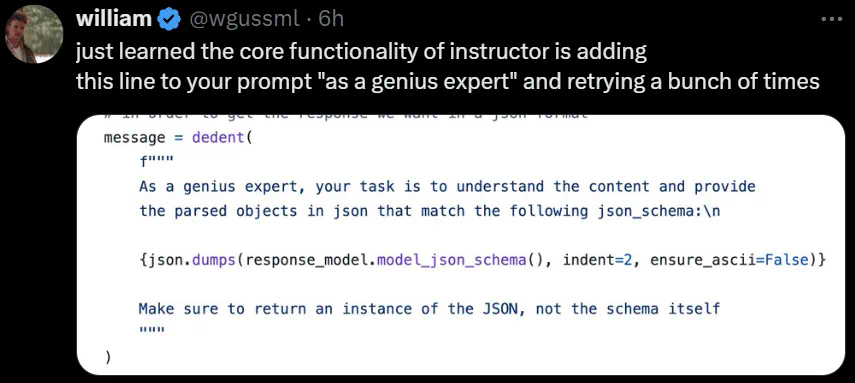 LLM 喜欢赞美,如果你在提示词中夸奖它是个「才华横溢的专家(genius expert)」,它就更可能为你生成更好的答案。