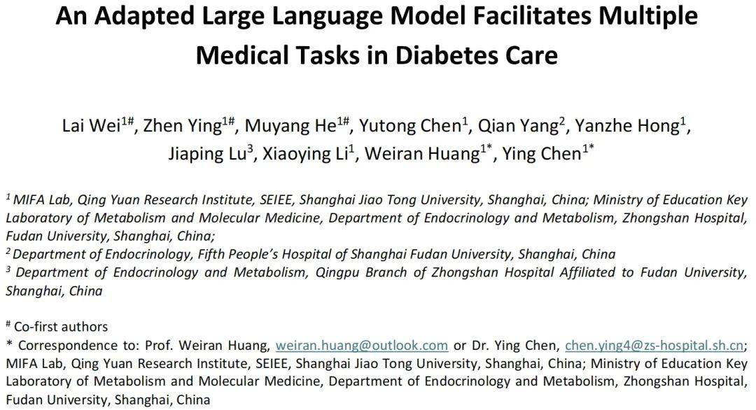 文章来源于互联网:上交大、复旦中山团队开发糖尿病专用大语言模型,助力个性化糖尿病管理