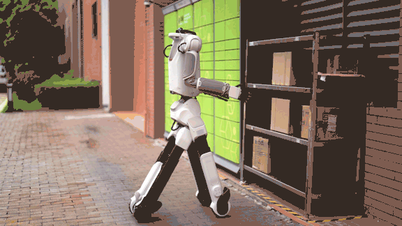 如果包裹很重,也能通过调节腿长来改变身体重心,保持平衡。
