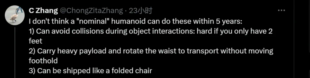 一些海外同行看完「小五」视频后,表示,四足方案的稳定性,始终要更好一些,尤其是当机器人与对象大力相互作用时。