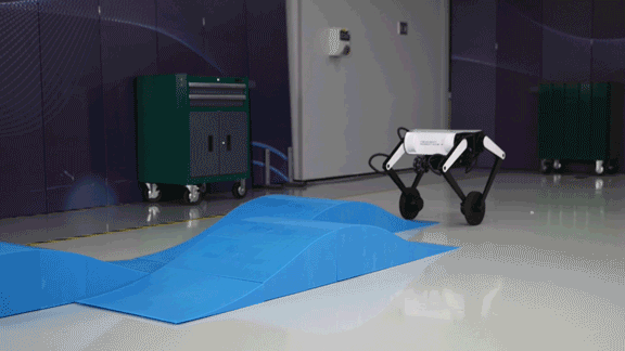 来到平地,又会从四足迈步状态切换到四足轮滑,追求移动效率。